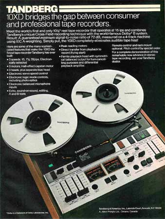 Color magazine ad for the Tandberg 10XD. Published November 1976. Actual size approximately 8.5 x 11 inches.