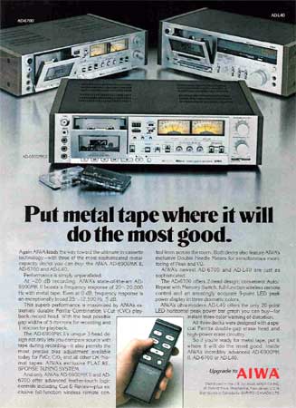 Color ad for the Aiwa AD-6900MKII, AD-6700 and AD-L40 cassette decks.