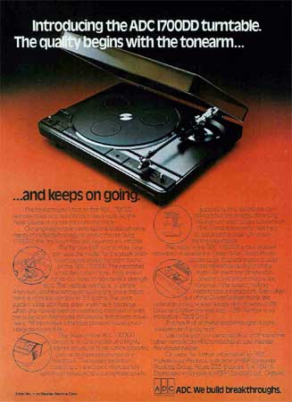 Color ad for the ADC model 1700DD turntable. Published September 1979.