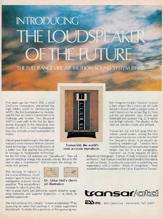 Color magazine ad for the ESS Transar speaker. Published May 1978.