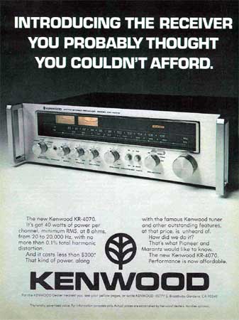 Color magazine ad for the Kenwood KR-4070. Published July 1979. Actual size approximately 8.5 x 11 inches.
