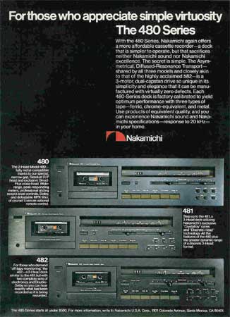 Color magazine ad for the Nakamichi 480, 481 and 482 cassette decks.