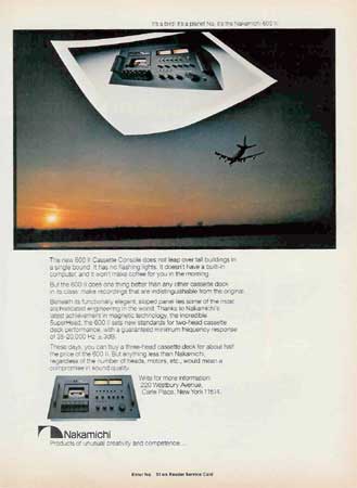 Color magazine ad for the Nakamichi 600II cassette deck.