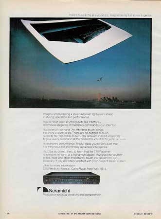 Color magazine ad for the Nakamichi 730 receiver.