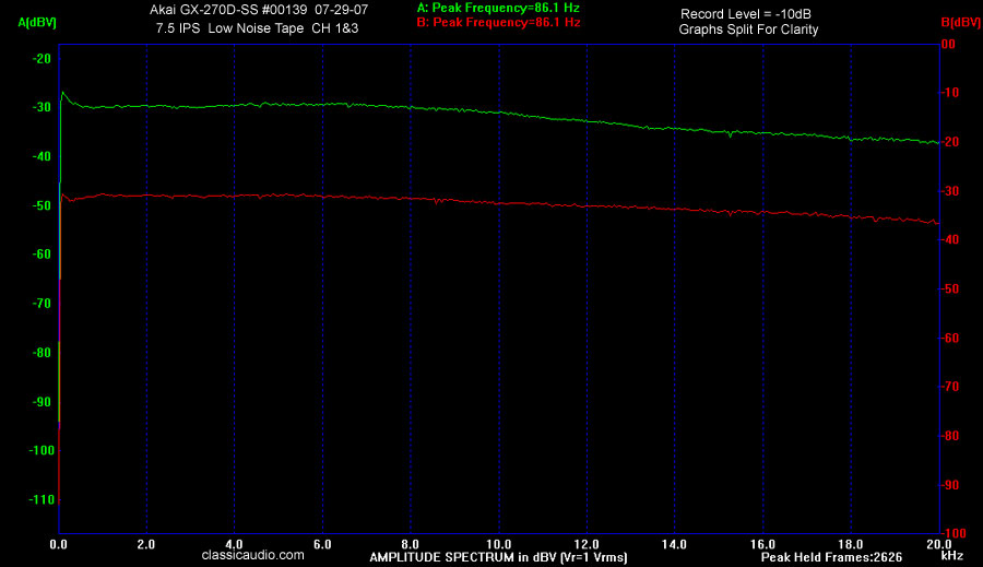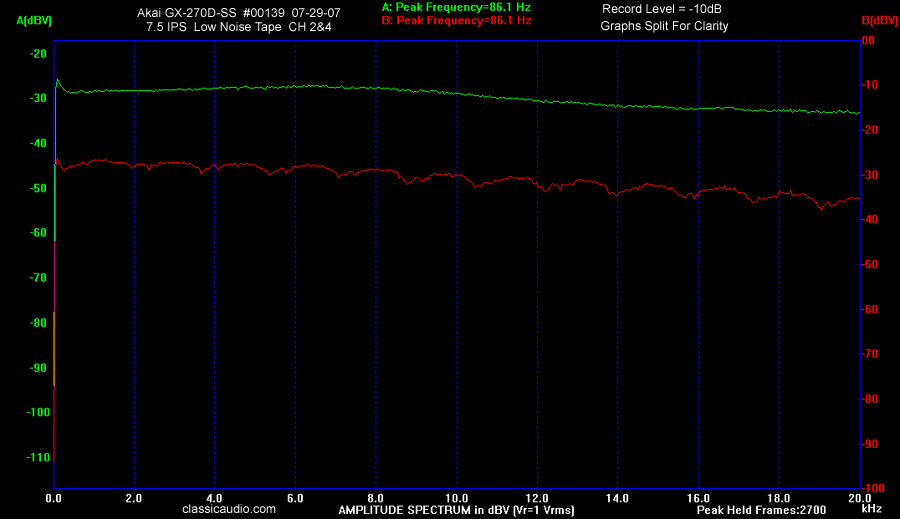 Akai model GX-270D-SS 4 channel auto-reverse direct drive reel to reel in good condition. It has been serviced. Does not include tape or reels. Record/playback performance graphs below.