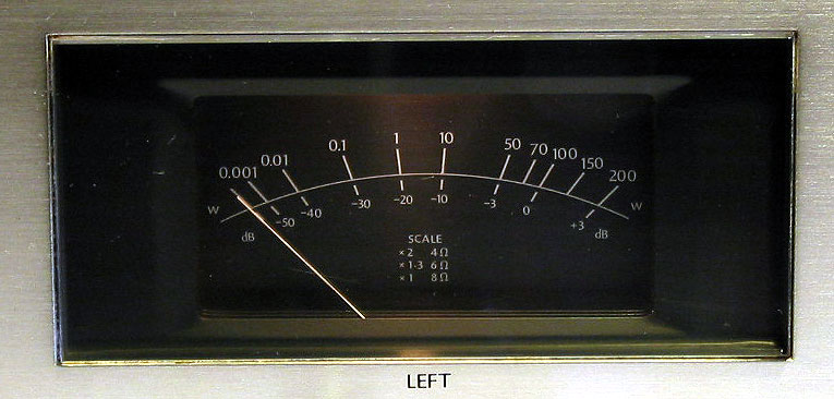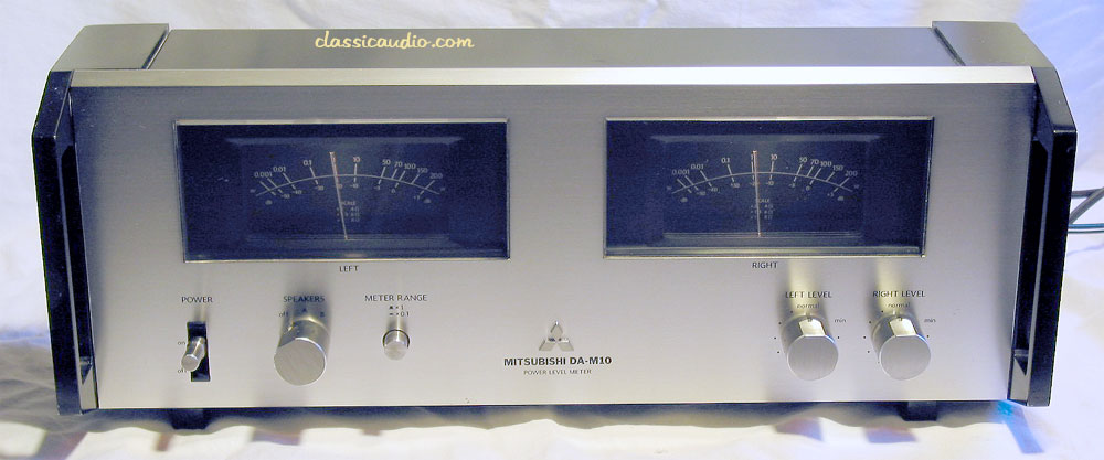 Got power meters? Want power meters? You need this Mitsubishi DA-M10 power level meter in very good condition. This device connects between the pre-out and main-in of any receiver or amplifier. Or you can mate it with the Mitsubishi DA-A10 amplifier as shown here. It has calibrated settings for 75 watt, 100 watt and 150 watt amps. It has been serviced and aligned. Includes a copy of the owner's manual. Note that the speaker selector function only works with the Mitsubishi amplifier.