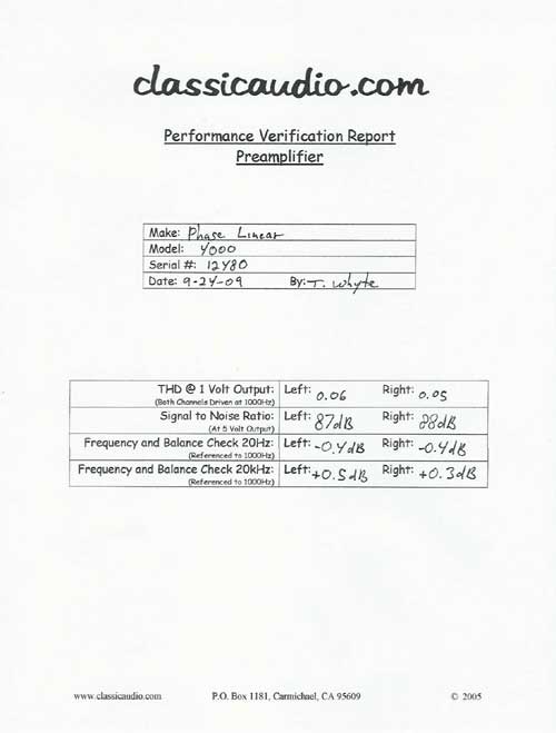 Phase Linear 4000 Autocorrelation Preamplifer in immaculate condition with optional wood cabinet. It has been serviced and fully tested. Includes a copy of the owner's manual and our original Performance Verification Report. This magnificent preamp features 2 phono inputs, one with adjustable loading, a built in expander (think DBX 1BX), a single ended noise reduction system known as Autocorrelation and an active low frequency equalizer. It also features 4 channel (ambience) operation controlled by the center joystick! Made in U.S.A. and designed by Bob Carver.