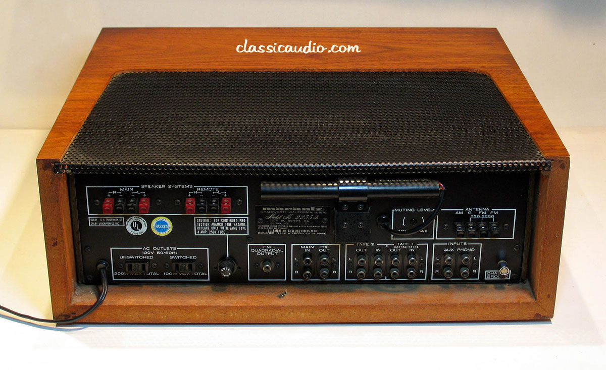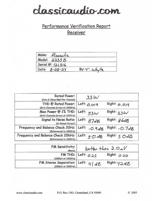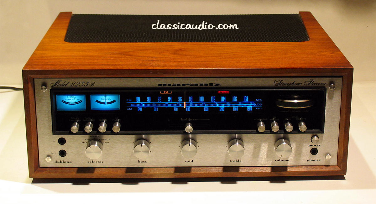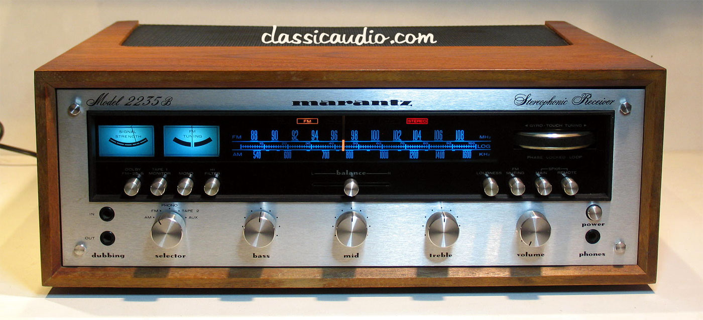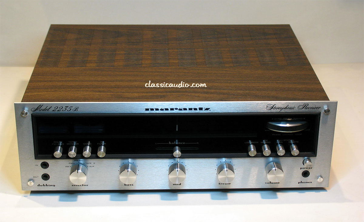 Marantz model 2235B receiver in excellent condition with optional wood cabinet in very good condition. Rated at 35 watts RMS per channel into 8 ohms. This unit has been serviced and fully tested. Our original Performance Verification Report included. Date of manufacture: October 13, 1976.