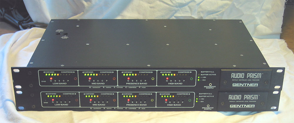 Gentner model Audio Prism multiband processor, pair, in excellent condition. Includes user's manual, Optimod 8100 replacement card #5 and replacement control panel. All components tested and working. Sold only as a set.