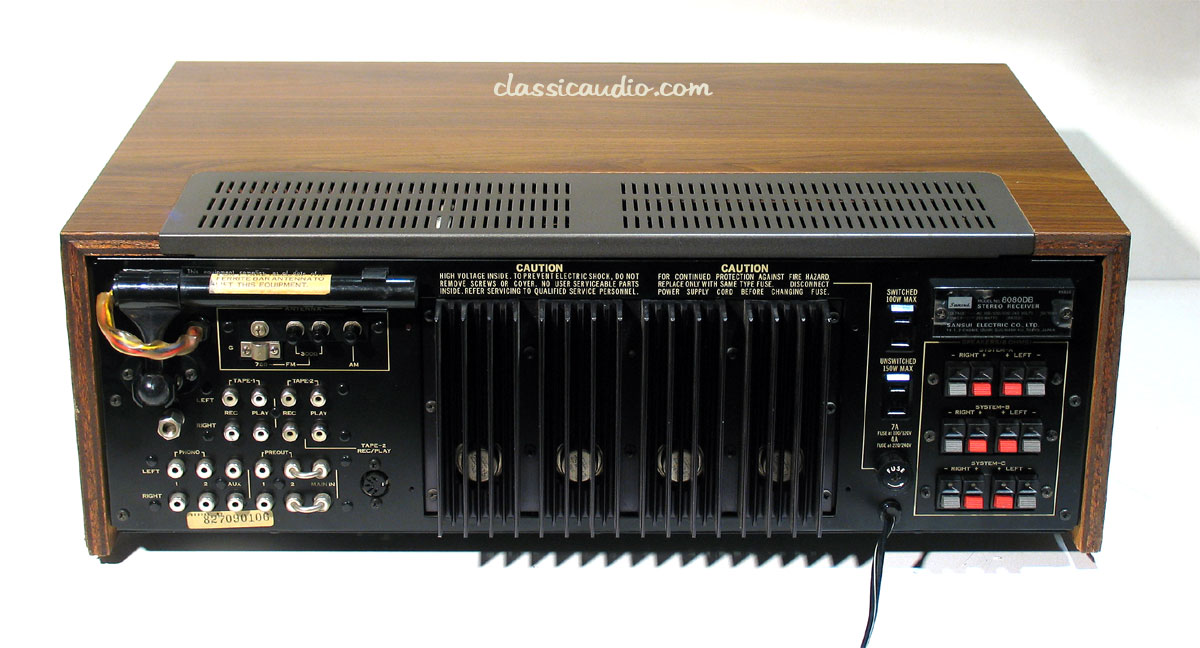 The Sansui 8080DB is an FM/AM stereo receiver with all the same sophisticated circuitry as the 9090DB, but with 85 watts per channel, minimum RMS, 1000Hz both channels driven and dazzling 0.2 % total harmonic distortion (at rated output).