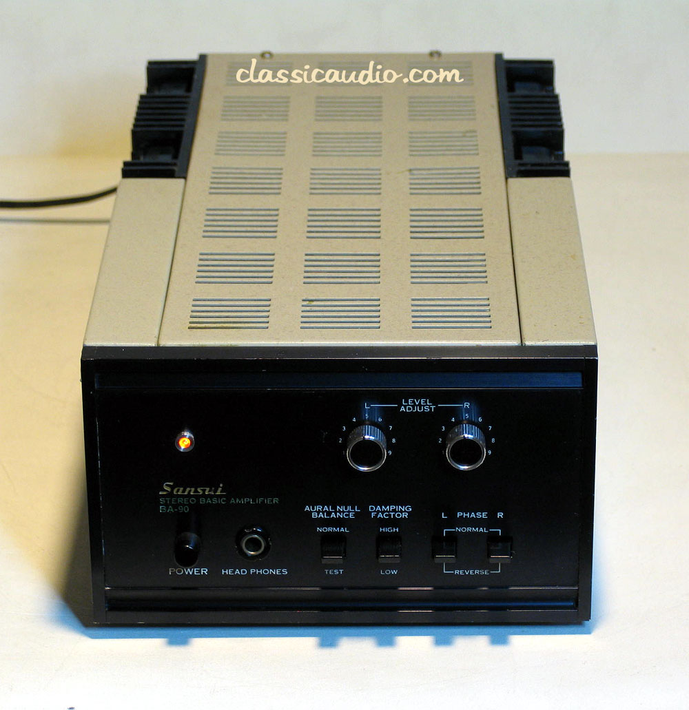 Sansui model BA-90 power amplifier in excellent condition. This unit has been serviced and fully tested. Includes a copy of the owner's manual and our original Performance Verification Report.