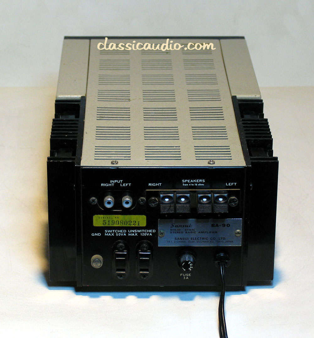 The Sansui model BA-90 is rated at 28 watts RMS per channel into 8 ohms.