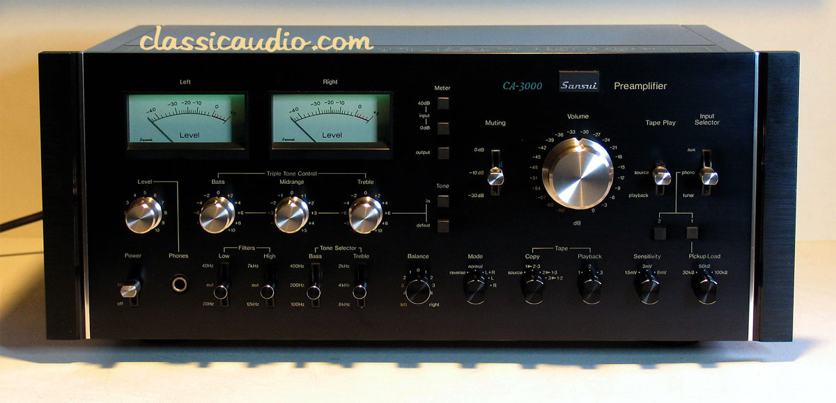 Sansui model CA-3000 preamplifier in excellent condition. This is Sansui's flagship preamp and one of the most sought after vintage pieces of any brand. Part of the "Exclusive Defintion Series". This unit has been serviced and fully tested. Our original Performance Verification Report and a copy of the owner's manual included.