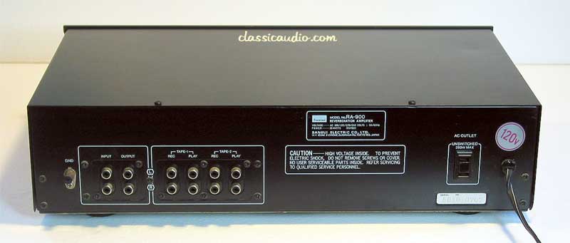 Sansui model RA-900 stereo spring reverb in very good condition. Features a front panel jack switchable for either microphone or guitar. Mic or guitar can be mixed with the line level inputs. Can be switched so Mic/Guitar is "wet" and line is "dry". This unit will also expand a single tape monitor into 2. It has been serviced and fully tested.