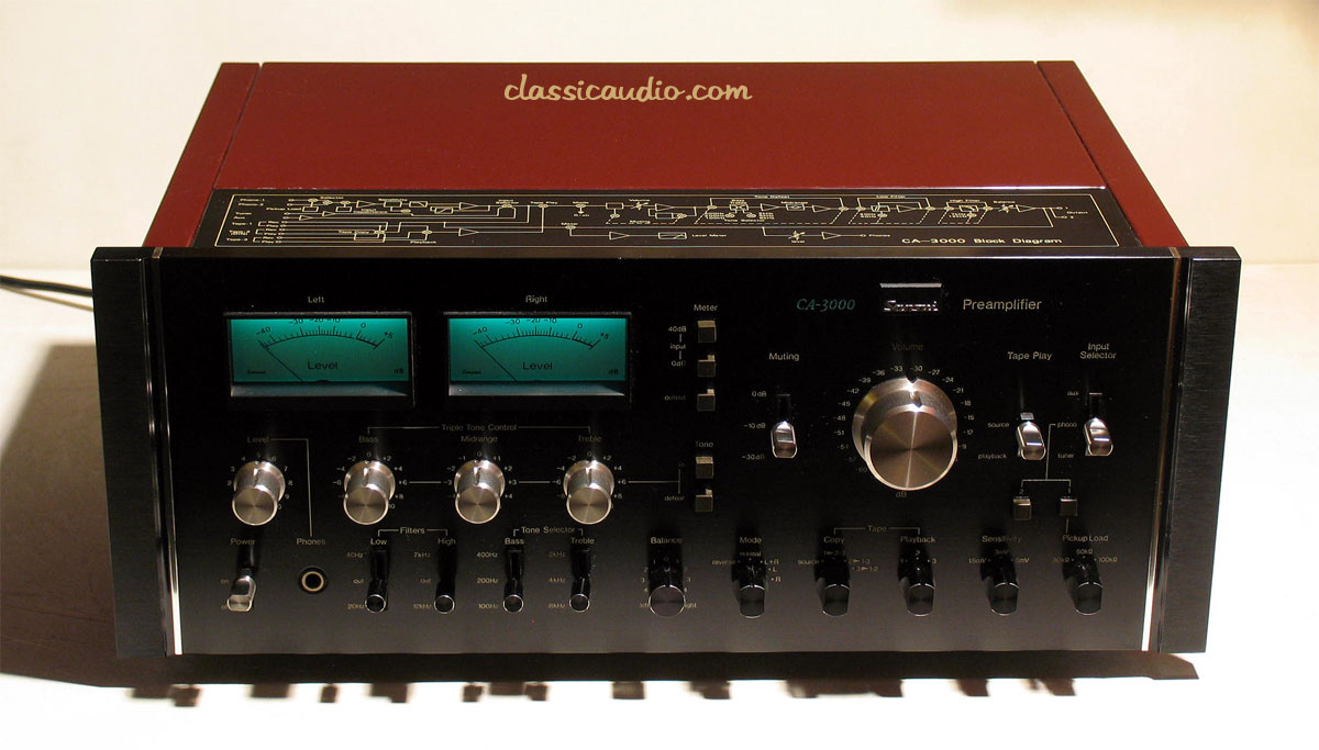 Our finest control stereo preamplifier. Contemporary disc recordings which feature extremely wide dynamic range make strenuous demands on all links in the reproduction chain, especially in the pre and power amplification stages. Dynamic range and other critical high fidelity parameters, such as a wide frequency response, low distortion and the ability to handle all musical signals without clipping and without an increase in noise, must be applied to any preamplifier if one is to accurately judge its quality. Add to these the control versatility needed in a complex component set-up, and the power stability required for dependable performance and you have described the CA-3000.
