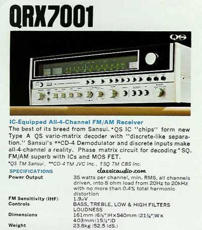 Specifications: Power Output: 35 Watts per channel RMS X4 into 8 ohms.