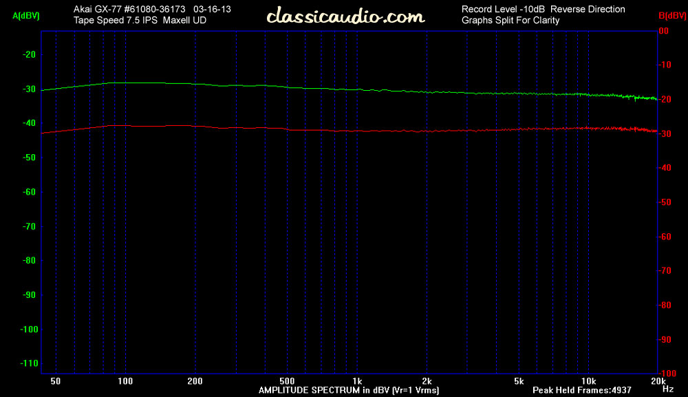 Akai GX-77 reel to reel in immaculate condition. It has been serviced, fully tested and aligned. Includes a copy of the owner's manual (English section only). Heads are in excellent condition, please see frequency response charts below.