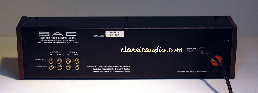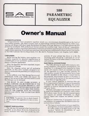 SAE model 180 Parametric Equalizer in excellent condition. This unit has been serviced and fully tested. Includes a copy of the owner's manual and a magazine ad.