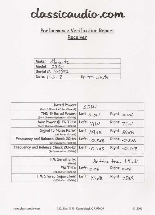 The Marantz model 2250 is an all solid state receiver incorporating the innovative design and unparalleled technology that have made Marantz famous in the audio component industry.