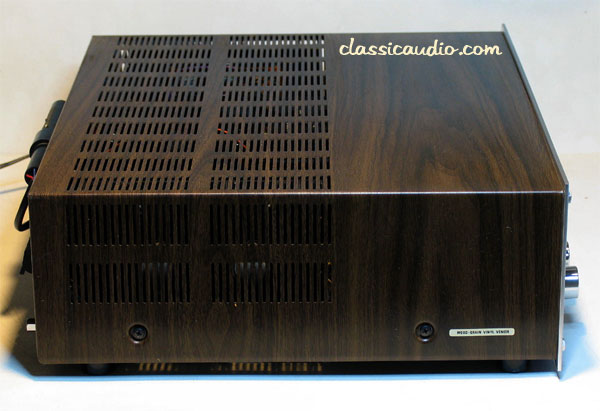 This 2250 has a cosmetic unpleasantness or two on the faceplate. At the lower left corner there are some tiny identifying marks. There is a scratch on the "H" in "Stereophonic". The good news is that the faceplate is not difficult to replace and reproduction faceplates are currently being produced for similar models. Should just be matter of time until this one is also reproduced.