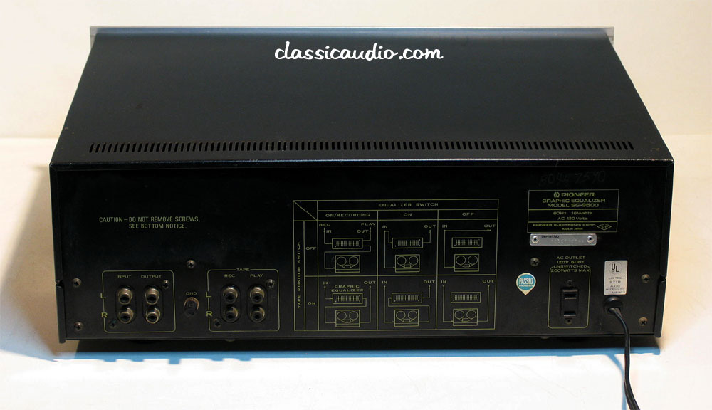 Pioneer model SG-9500 graphic equalizer in very good condition. It has been serviced and fully tested. Includes a copy of the owner's manual.