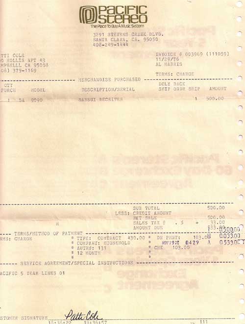 Original Purchase RecieptFrom Sansui: