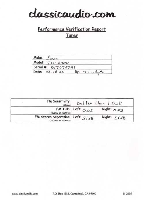 The Sansui model TU-9900 is Sansui's flagship analog tuner. It's performance is rarely approached.. It features very low distortion, very high sensitivity and a narrow IF mode for superb selectivity. To get everything this tuner can offer it MUST be professionally aligned.Sold as a set only.