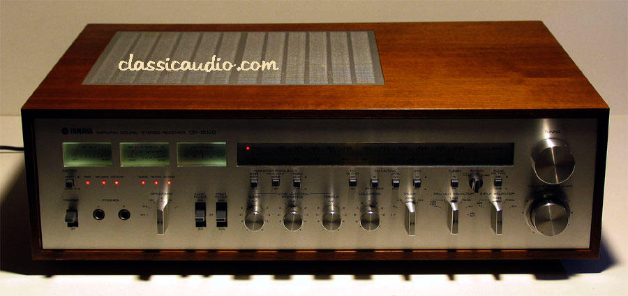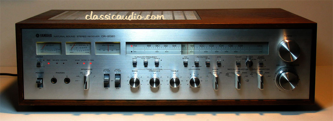 Yamaha model CR-2020 receiver in excellent condition. Rated at 105 watts RMS per channel into 8 ohms. It has been serviced. Includes our original Performance Verification Report, and a copy of the owner's manual. Loaded with features including a built-in MC phono preamp, varaible loudness contour control and power output meters.