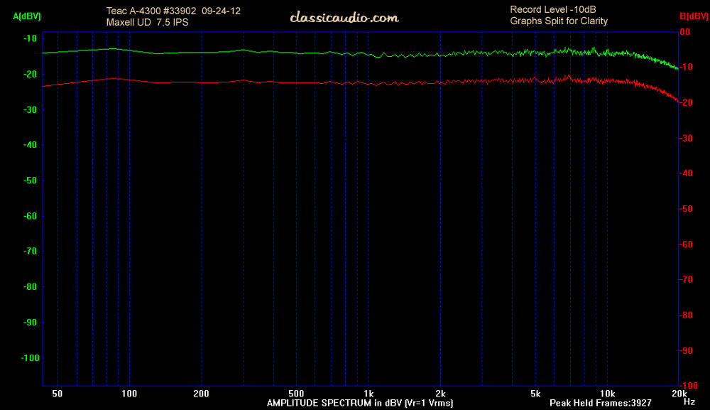 Teac A-4300 reel to reel in excellent condition. It has been serviced, fully tested and aligned. Includes gold metal take up reel and a copy of the owner's manual. Heads are in excellent condition, please see frequency response chart below.