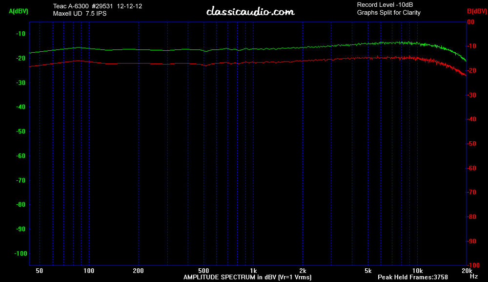 Teac A-6300 reel to reel in excellent condition. It has been serviced, fully tested and aligned. The pinch roller actuation mechanism has been disassembled, cleaned, lubricated and reassembled. Includes blank metal take up reel and a copy of the owner's manual. Heads are in very good condition, please see frequency response chart below.