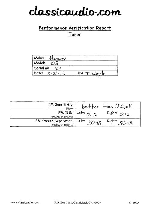 Marantz model 125 AM/FM Stereo tuner, Marantz model 3600 preamplifier and Marantz model 250M power amplifier. All are in immaculate condition. Amplifier rated at 125 watts RMS per channel into 8 ohms. The 250M and 3600 are rare "made in USA" models. These units have been serviced and fully tested. Our original Performance Verification Report and a copy of the owner's manual included for each.
