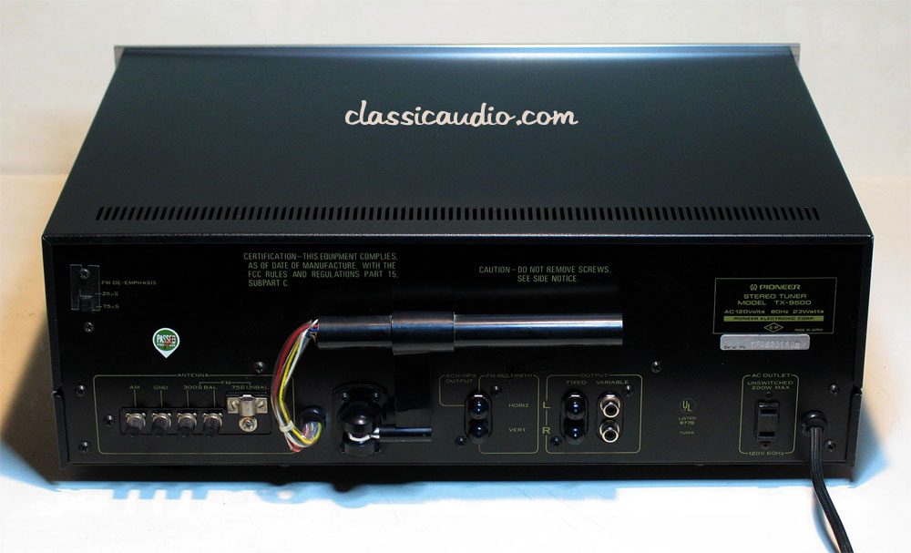 Pioneer model TX-9500 AM/FM Stereo tuner in excellent condition. The TX-9500 is the top of the line and features superior build quality with outstanding performance. This unit has been serviced and fully tested. Our original Performance Verification Report and a copy of the owner's manual included.