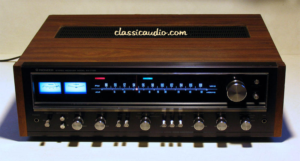 The SX-7730 is the European version of the SX-737. Sections of the front panel are black instead of silver, and the dial and meters are a somewhat lighter shade of blue. Otherwise, they are identical models. Rated at 35 watts RMS per channel into 8 ohms. It has been serviced. Includes our original Performance Verification Report a copy of the owner's manual.