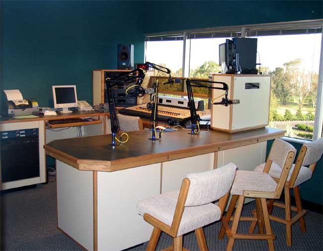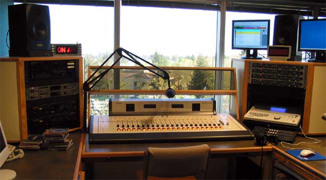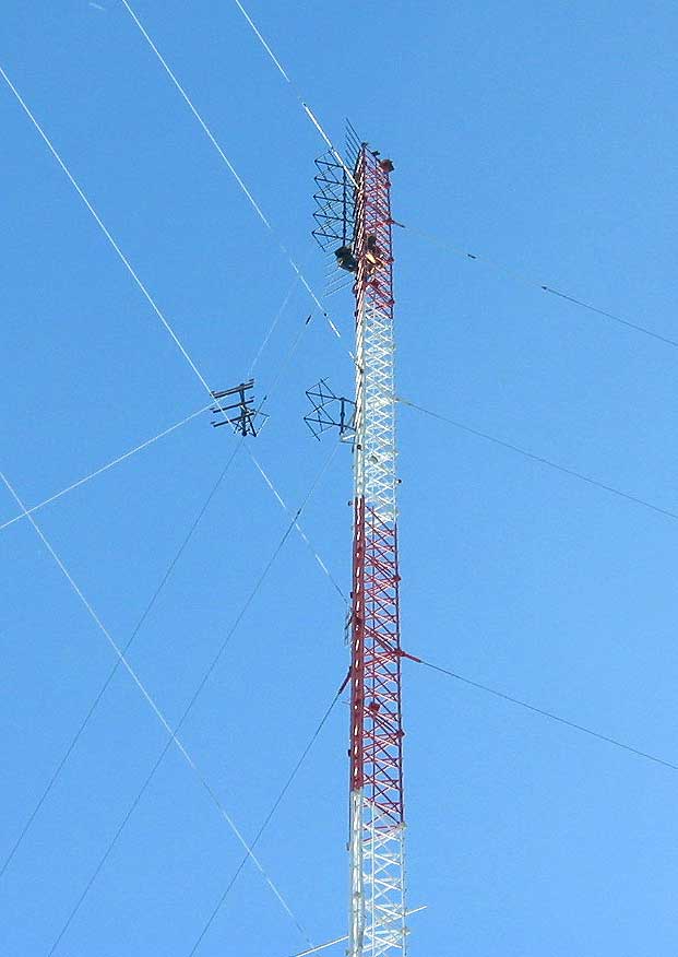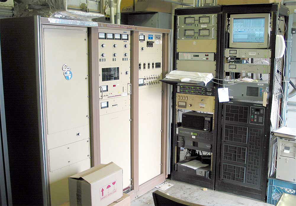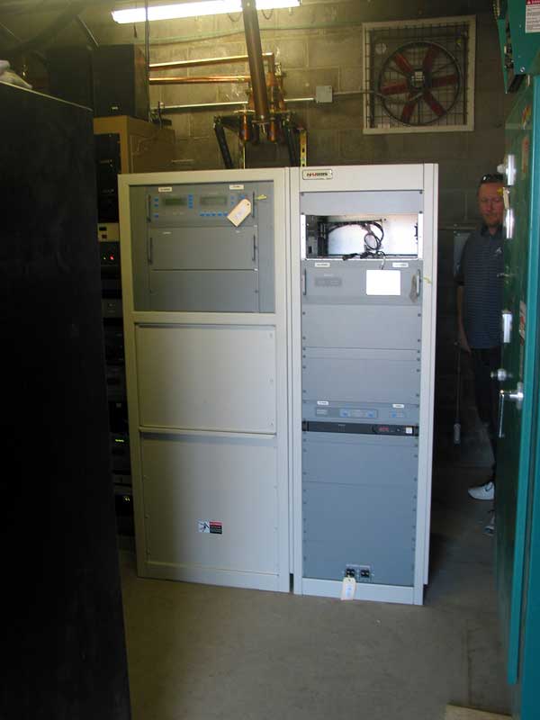 In the right side equipment rack can be seen the Harris Flexstar exciter and Harris ZX-2000 HD transmitter. HD TPO is 425 watts. HD program is delivered by the Harris Intraplex T1 system near the bottom of the left rack. |